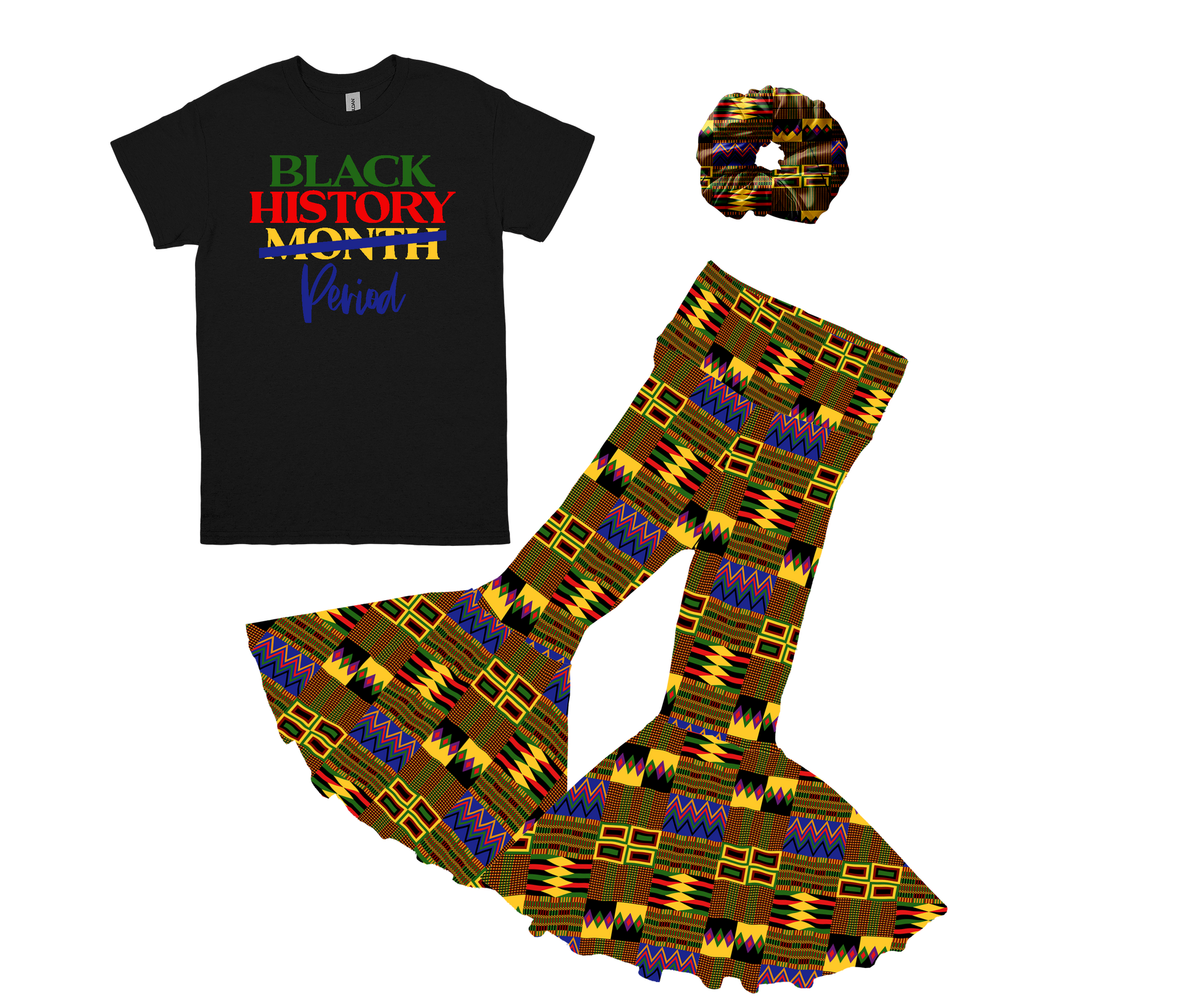 Celebrate Black History Month in style with this coordinated pants set and scrunchie. This festive ensemble is perfect for honoring heritage and culture with bold, meaningful design. The comfortable pants set pairs beautifully with the matching scrunchie for a complete, put-together look that's ideal for school events, family gatherings, or everyday wear during February and beyond.